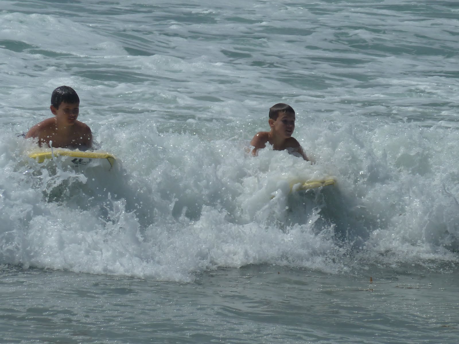 | Taylor talked Jacob into boogie boarding- "If Mom can do it, anyone can." |